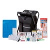イス型リュック、蓄光LEDライト、非常用給水バッグ(3L)、ブルーシート、使い捨てカイロ、使い捨てマスク、絆創膏・綿棒セット、水に流せるポケットティッシュ、軍手、静音アルミブランケット、携帯トイレ(1回分)、非常用呼子笛(IDカード付)、防災ガイドメモ各1